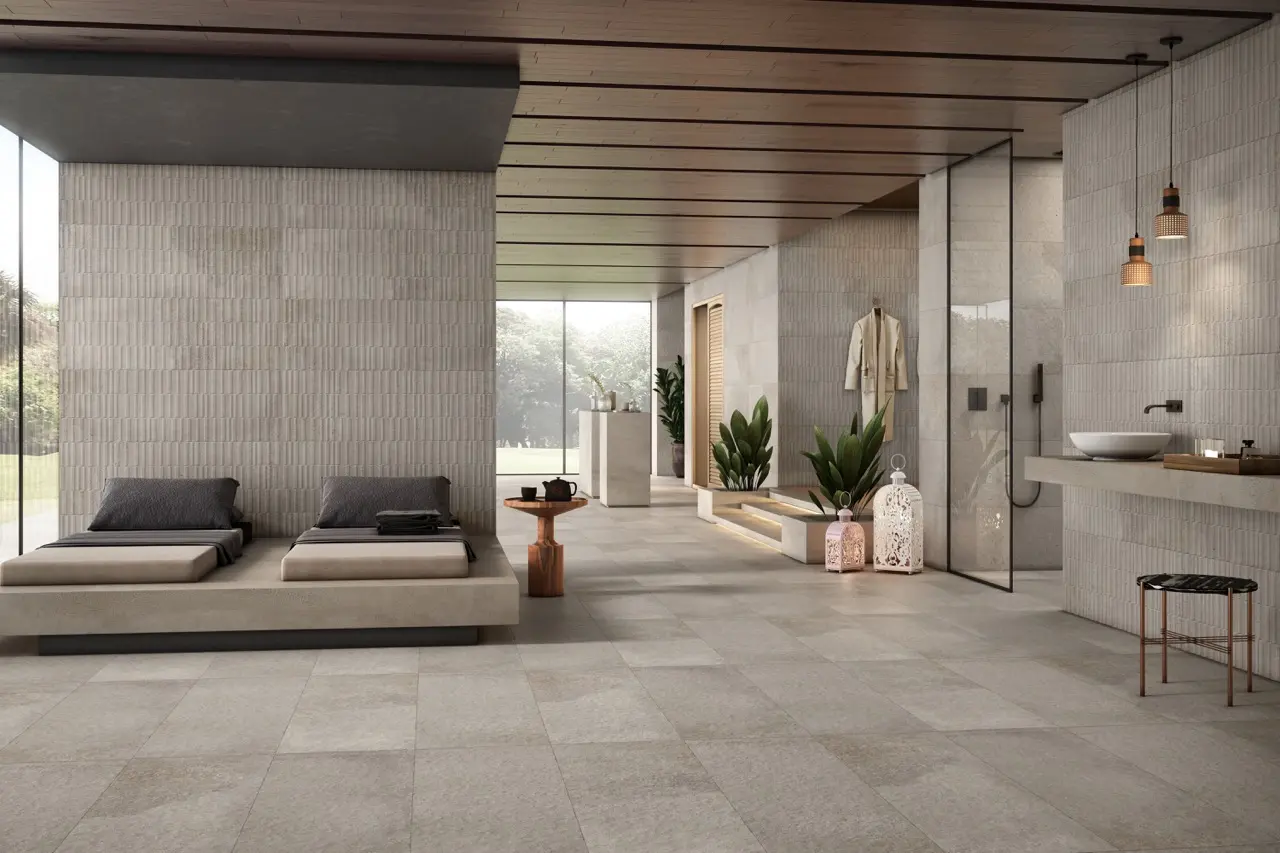 Find the perfect surface by exploring tiles based on their size and intended application. Whether designing a spacious living area, a modern bathroom, or an outdoor environment, discover formats that suit every space.